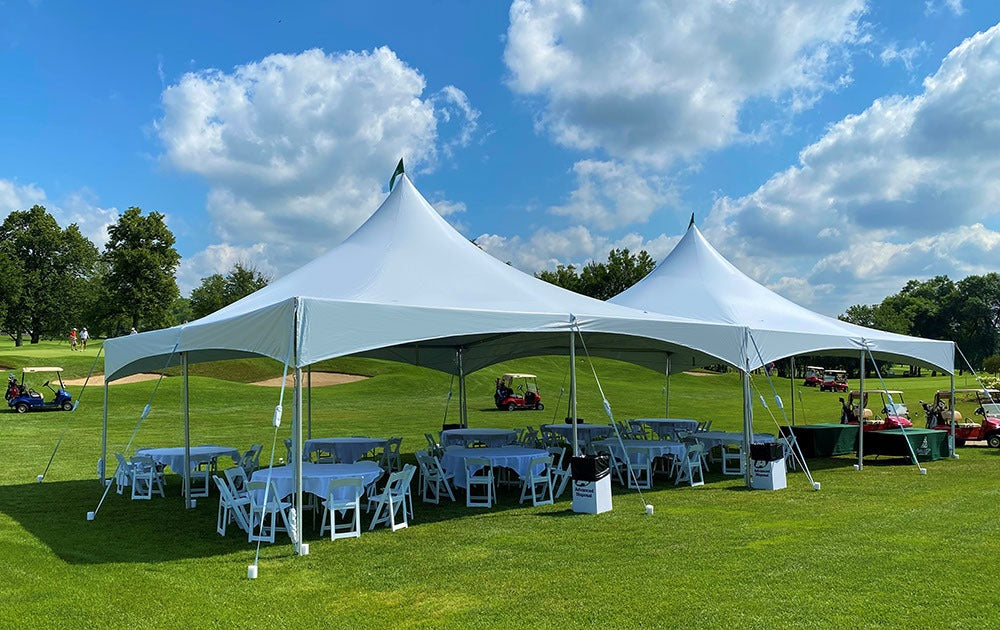 Our strong, elegant marquee tents are a staple for any event rental company or outdoor wedding venue. The High-Top Marquee Event Tent is easy to setup and even easier to takedown and clean. Multiple tents can be connected simply with gutters to make larger tents as well!