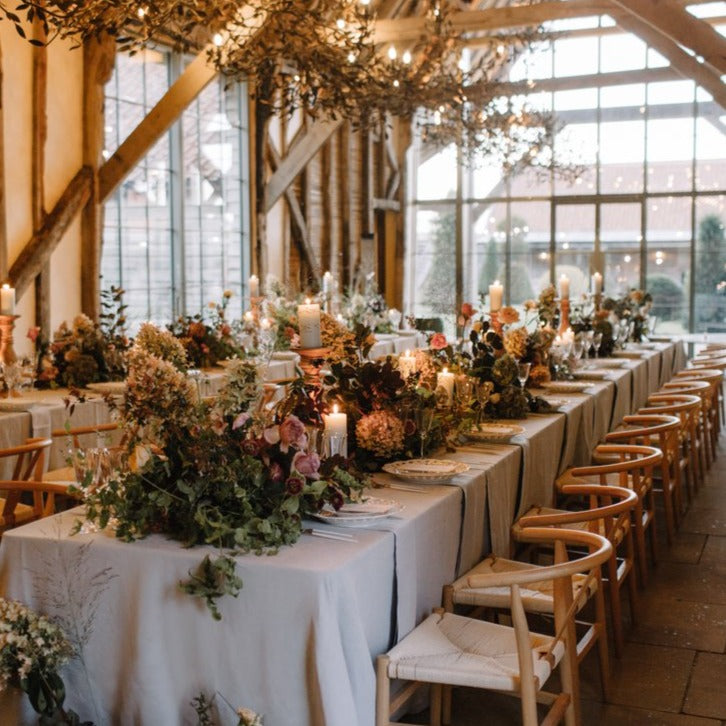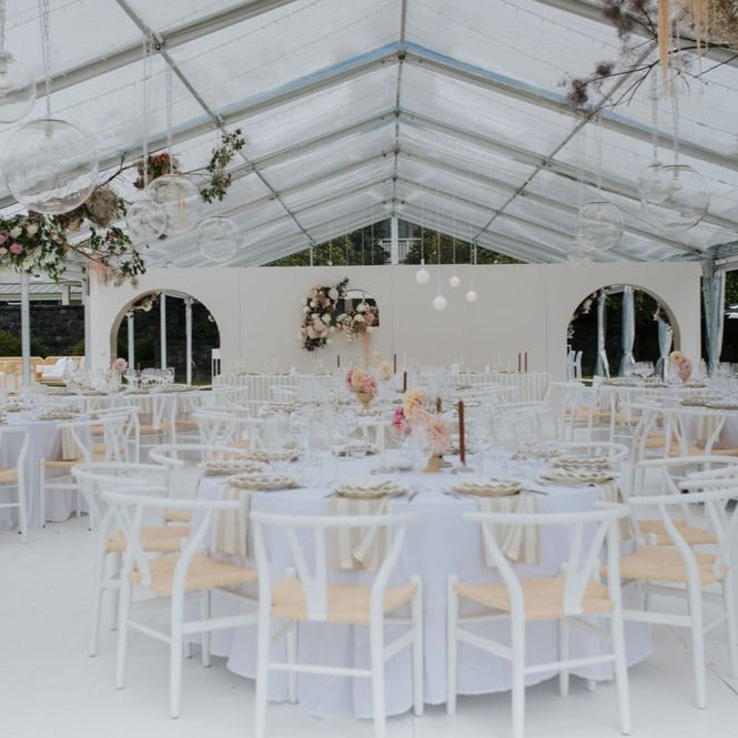 One of the hottest seating trends for weddings right now is, without a doubt, the Y Chair. This mid-century chair features a woven seat, comfortable curved back, and tapered legs for maximum stacking abilities. The Y Chair should be a staple in any rental catalogue, and looks fantastic in vintage or minimalist venues.